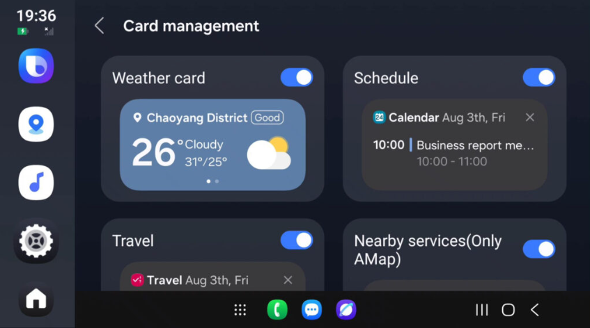 - Hava durumu, takvim, trafik ve yakıt istasyonları gibi akıllı widget’lar